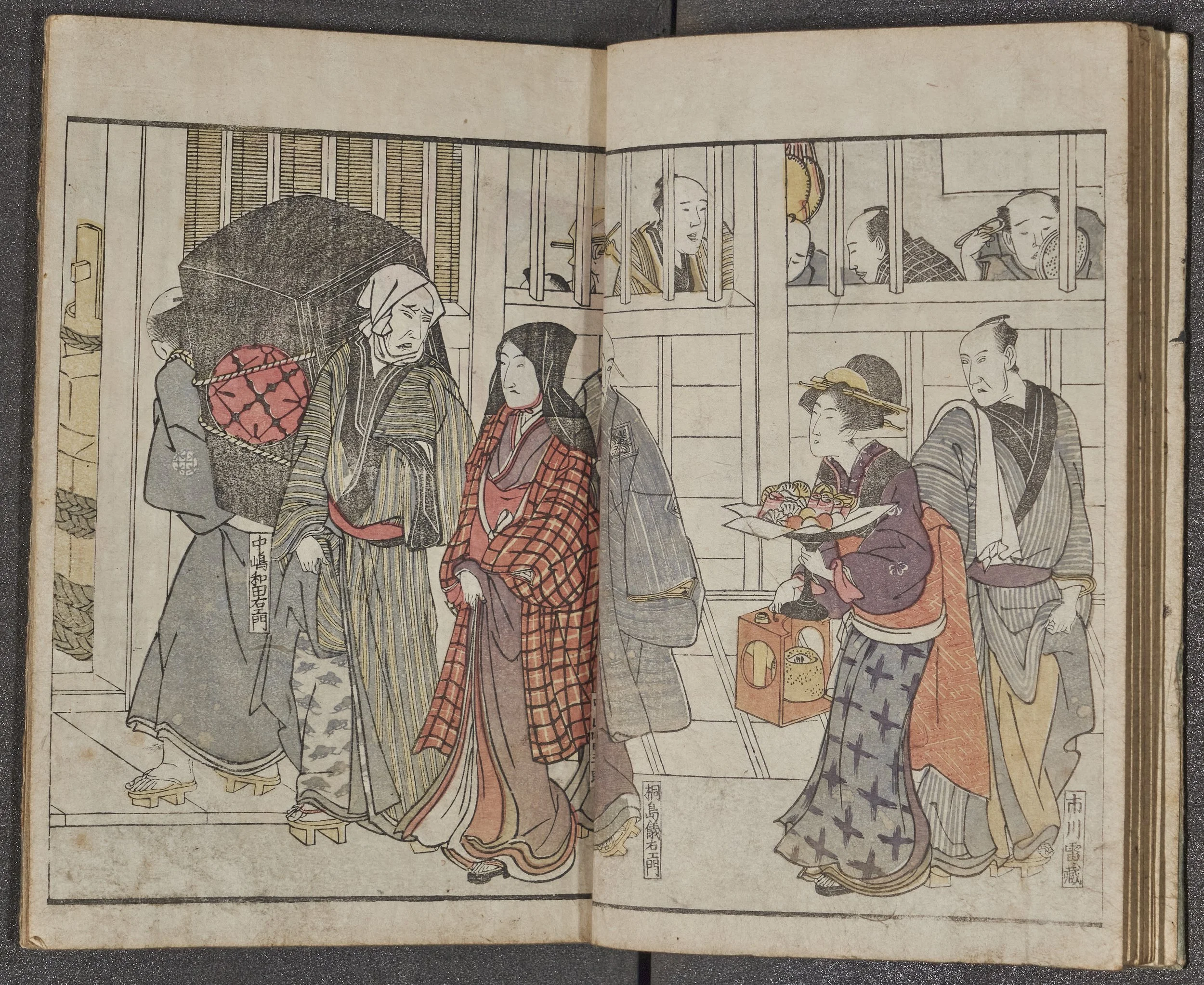1801 CE (Kansei 13 [first month]), Edo, Tokugawa Shogunate (present-day Tokyo, Japan) Polychrome woodblock-printed books, 2 volumes; ink and color on paper