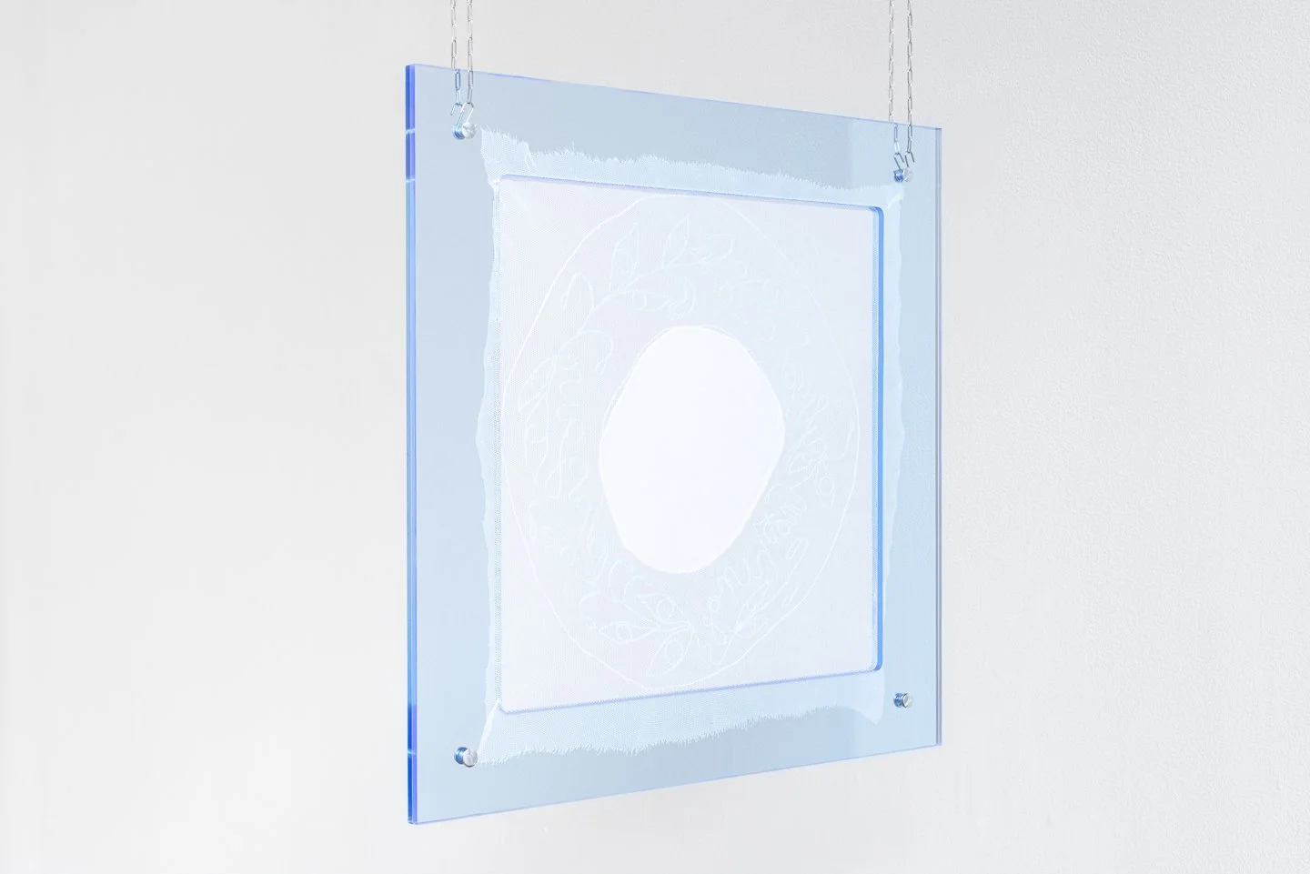 “hanky (tears)” 2022, embroidered lace, 18.5 in x 18.5 in. Photo credit: Neighboring States.