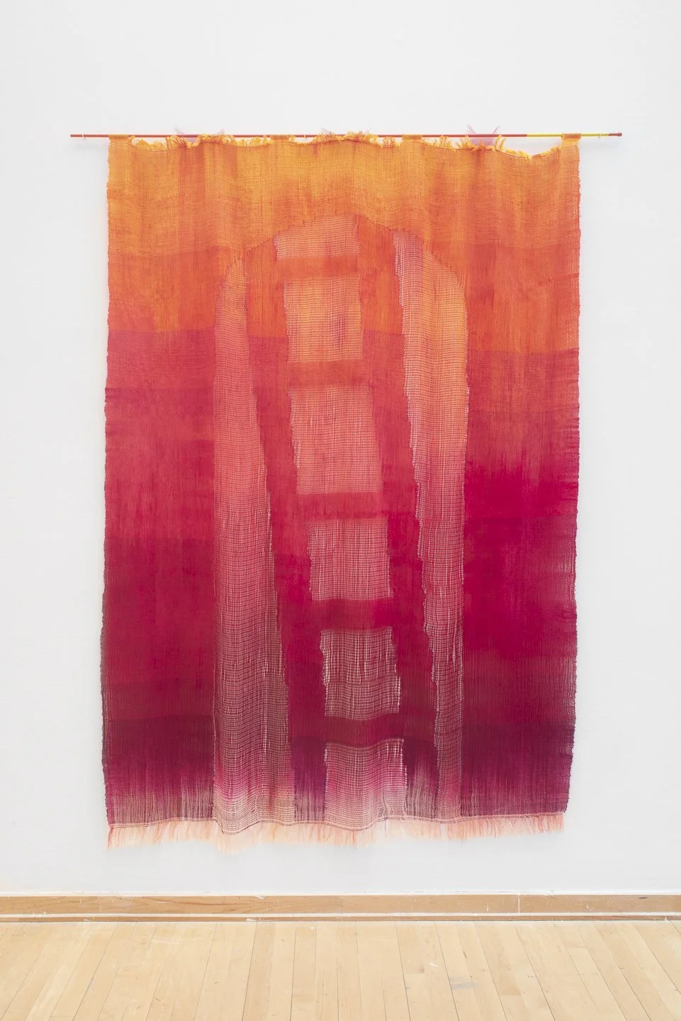 “ghost ladder,” 2021, hand painted and hand woven gauze, 80 in x 60 in. Photo credit: Neighboring States.