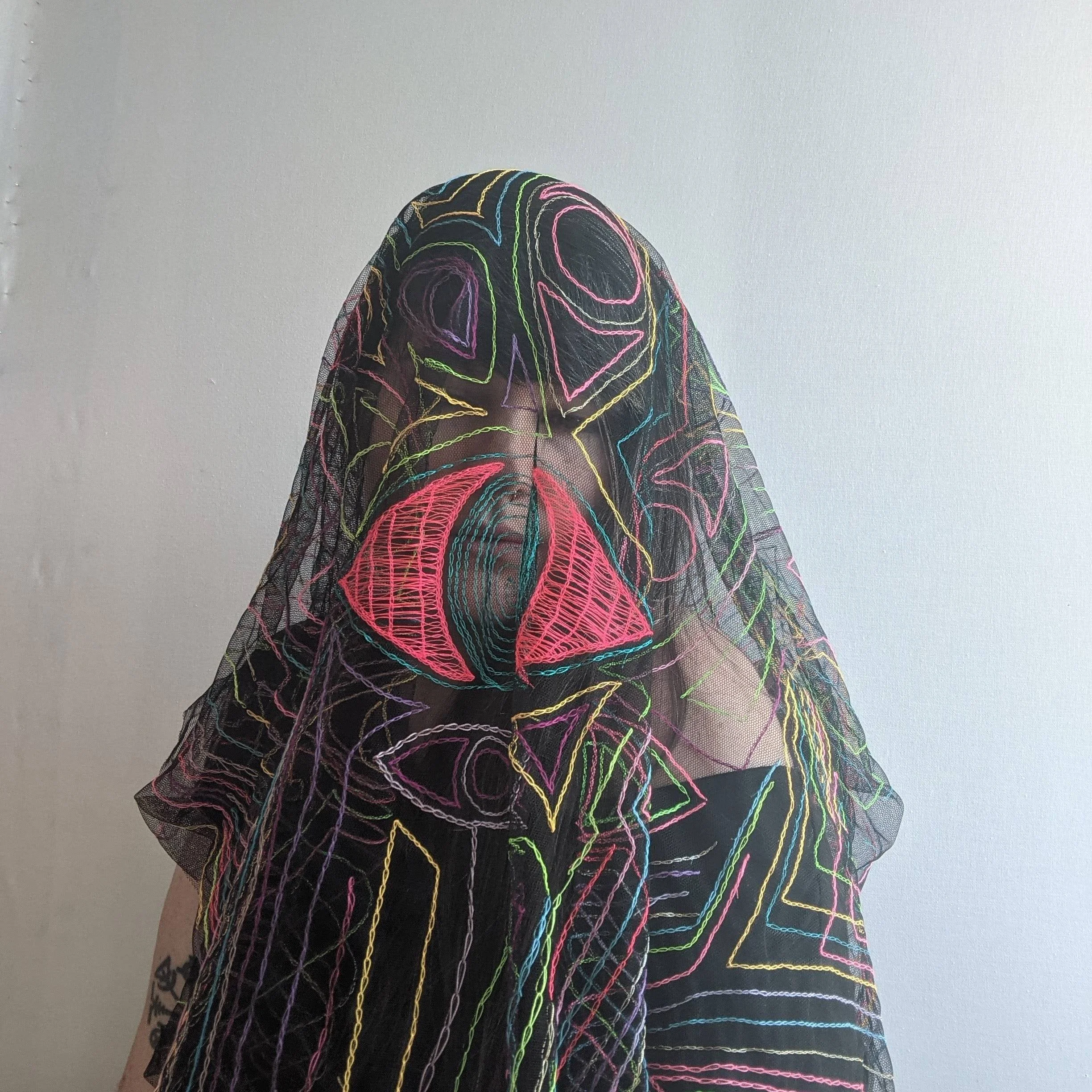I write poems in dream-like fragments and embrace textiles as evocative holders of cultural memory. Layering handmade weavings and lace with silk painting, my work speaks about surface, image, and object as an entangled whole. My objects are grounded in personal research in witchcraft and somatic traditions, with an emphasis on experimental poetry, mythology, and oral histories. These processes are forms of embodied drawing: an accumulation of intention. Textiles contain a record of their own making, an inscription of the values held by their maker and beholder. Textiles are an invitation to read these subtle markers of the past in the present in the interaction of object, material, and viewer. Textiles are texts. Stories change with every writer and with every reader. Meaning is hidden and revealed at every turn in every spoken word as well as every silence. Textiles are a nexus of the past and present.