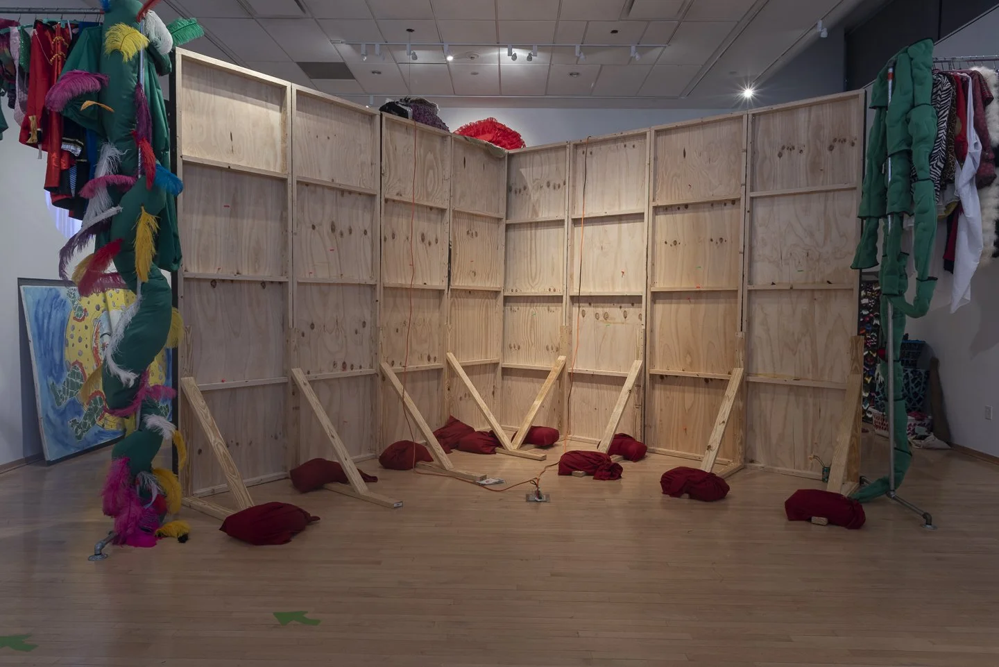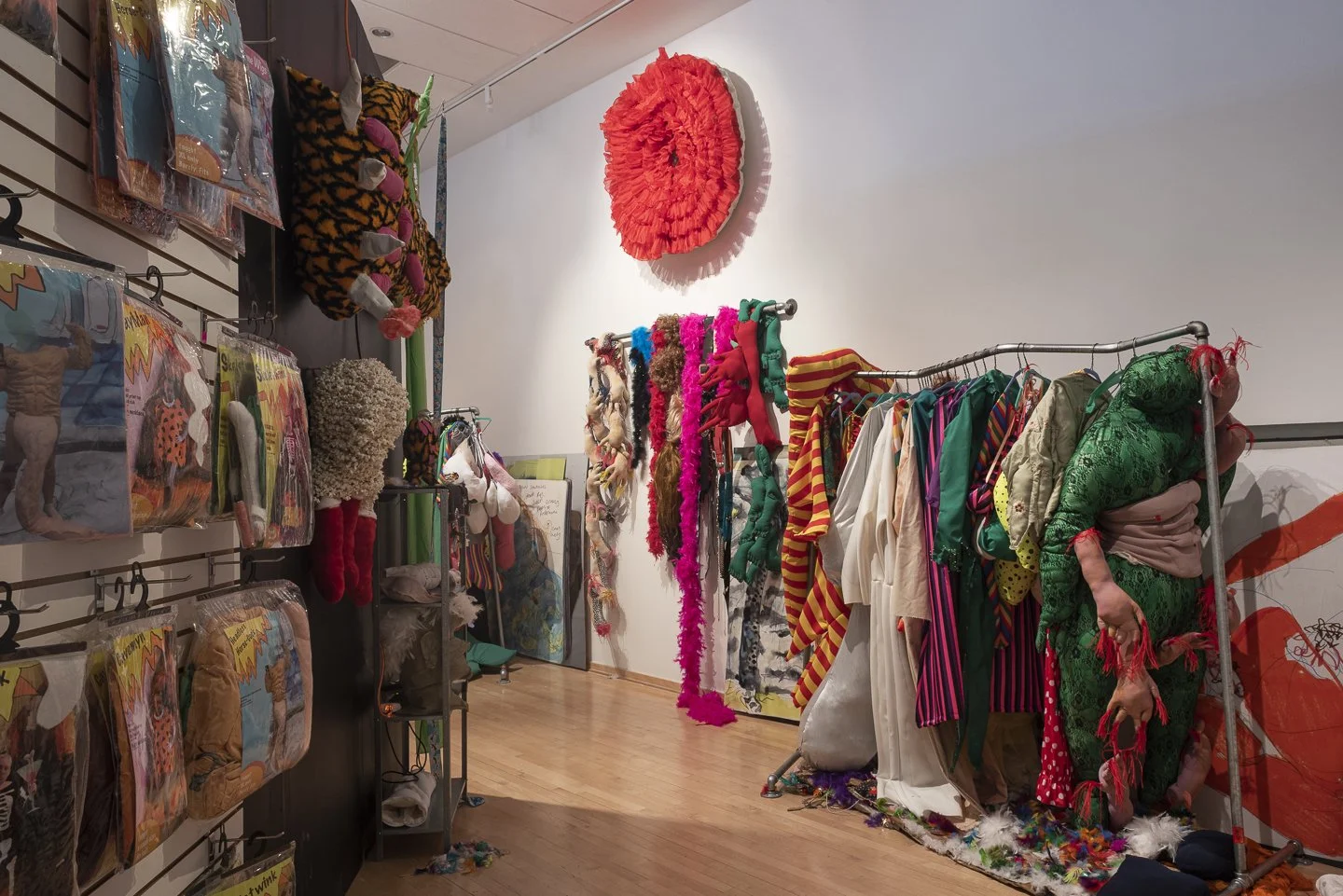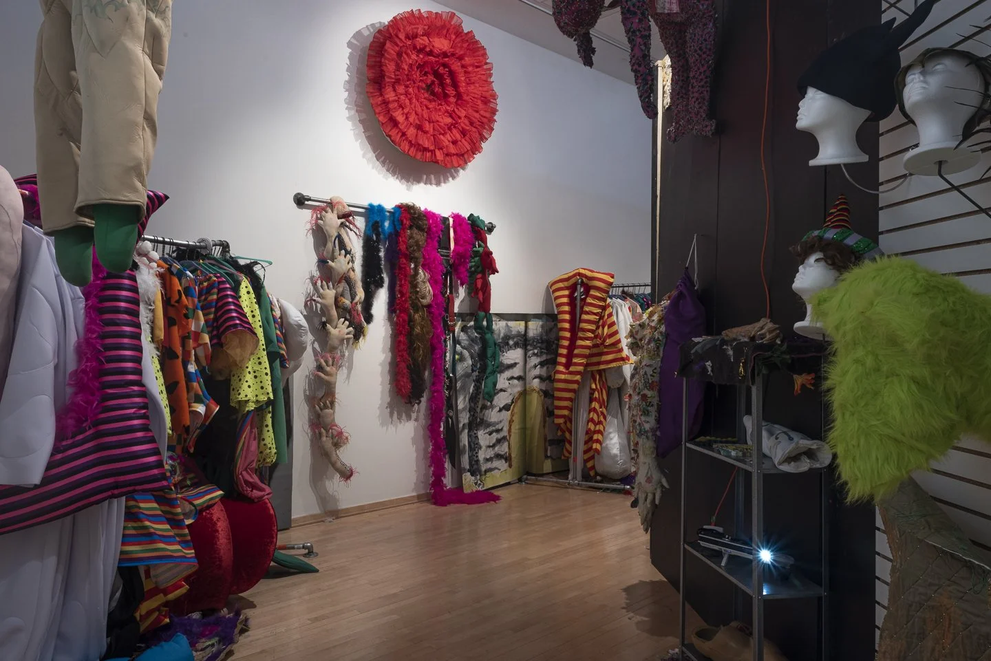 Feather Chiaverini (they/them) is an artist who makes costumes, props, and performances that explore issues related to poverty, skill, and generational roles. Feather’s work is informed by the theatrical trades and material-vocabularies of their ancestry; Feather’s mother was an actress, their father owned a costume shop, and their grandfather was a professional clown. Inspired by devised theater techniques and the everyday hustle of their family, Feather builds immersive installations, soft sculptures, and digital environments to imagine new futures and create utopias made possible by the familial knowledge they were able to inherit. Feather is interested in the roles we intentionally and/or unintentionally wear, interrogating the difference between a costume made in fear and one made in hope. Interest in the multiple roles of costume began early for Feather, as they witnessed the many lives and stories one costume could possess without ever sacrificing its origin. With resilience and pluralism, they create props and costumes that are in a constant state of becoming. Feather embraces an amateur or ‘de-skilled’ aesthetic, elevating the utilitarian and everyday object in the process. Their aesthetic and the quickness with which they make and manipulate materials speaks to the resilience and resourcefulness of Queer, DIY communities.
