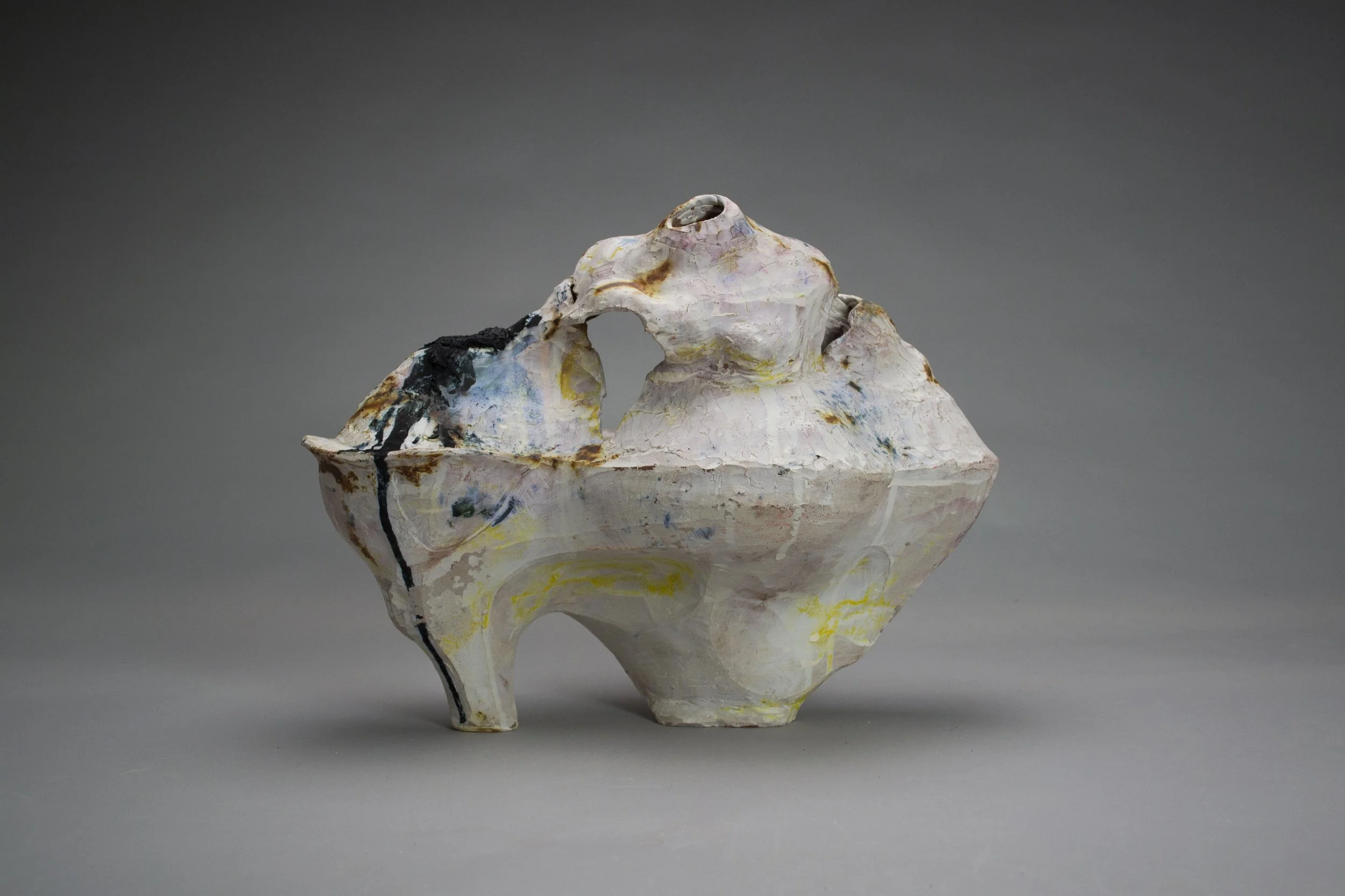 Untiled (Naked Saggar), 10” x 18” x 10” , Ceramics, White Terra-Sig, Electric Saggar fired